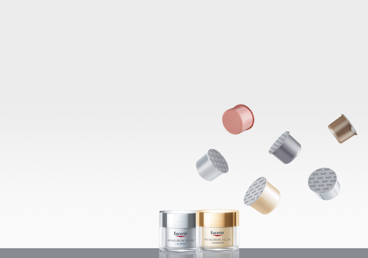 - Eucerin Hyaluron-Filler + Volume-Lift motverkar de djupare rynkorna och den förlust av volym, konturer och fasthet som uppstår när huden åldras. Den fyller upp djupa rynkor och omdefinierar ansiktskonturerna för en lyftande effekt.