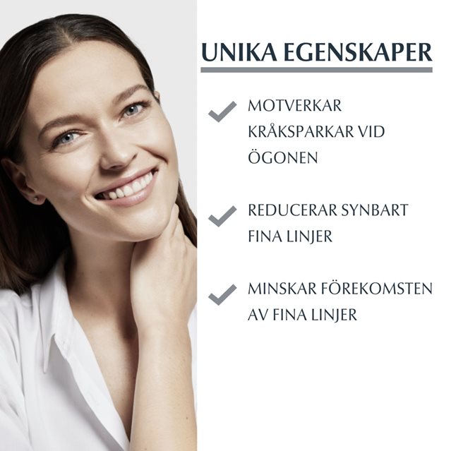 Hyaluron-Filler Eye Cream SPF 15 angriper de första tecken på åldrande som till exempel "kråkfötter", rynkor runt ögonen. Den fyller synbart ut fina linjer och djupa rynkor för en jämnare hud. Den ger även ett effektivt skydd mot fotoåldrande orsakat av solen och uv-strålning (förtida åldrande av huden orsakat av solen), att rynkor blir djupare och fria radikaler.