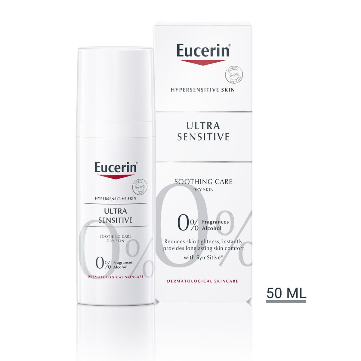 Eucerin ULTRA SENSITIVE Soothing Care Dry Skin är en återfuktande ansiktscreme speciellt framtagen för hyperkänslig torr hud. Cremen lugnar huden omedelbart, gör huden len och mjuk och minskar stramhetskänslan med långvarig effekt. Den aktiva ingrediensen SymSitive*, är speciellt framtagen för att lugna hyperkänslig hud.