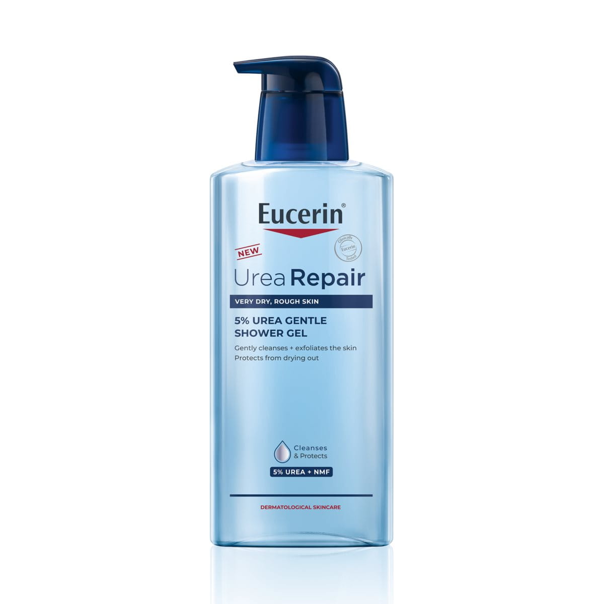 Eucerin UreaRepair 5% Gentle Shower Gel duschgel är en tvål- och parfymfri ansikts- och kroppsrengöring som är speciellt framtagen för daglig användning på mycket torr, grov och irriterad hud. Med en unik kombination av fuktgivande ingredienser – Urea och andra naturliga fuktgivare – rengör och exfolierar den varsamt grov hud utan att störa hudbarriären. Resultatet är en skonsam men effektiv rengöring. Huden upplevs mjukare, mer återfuktad och känns återställd. Efterlämnar ingen stramande känsla.